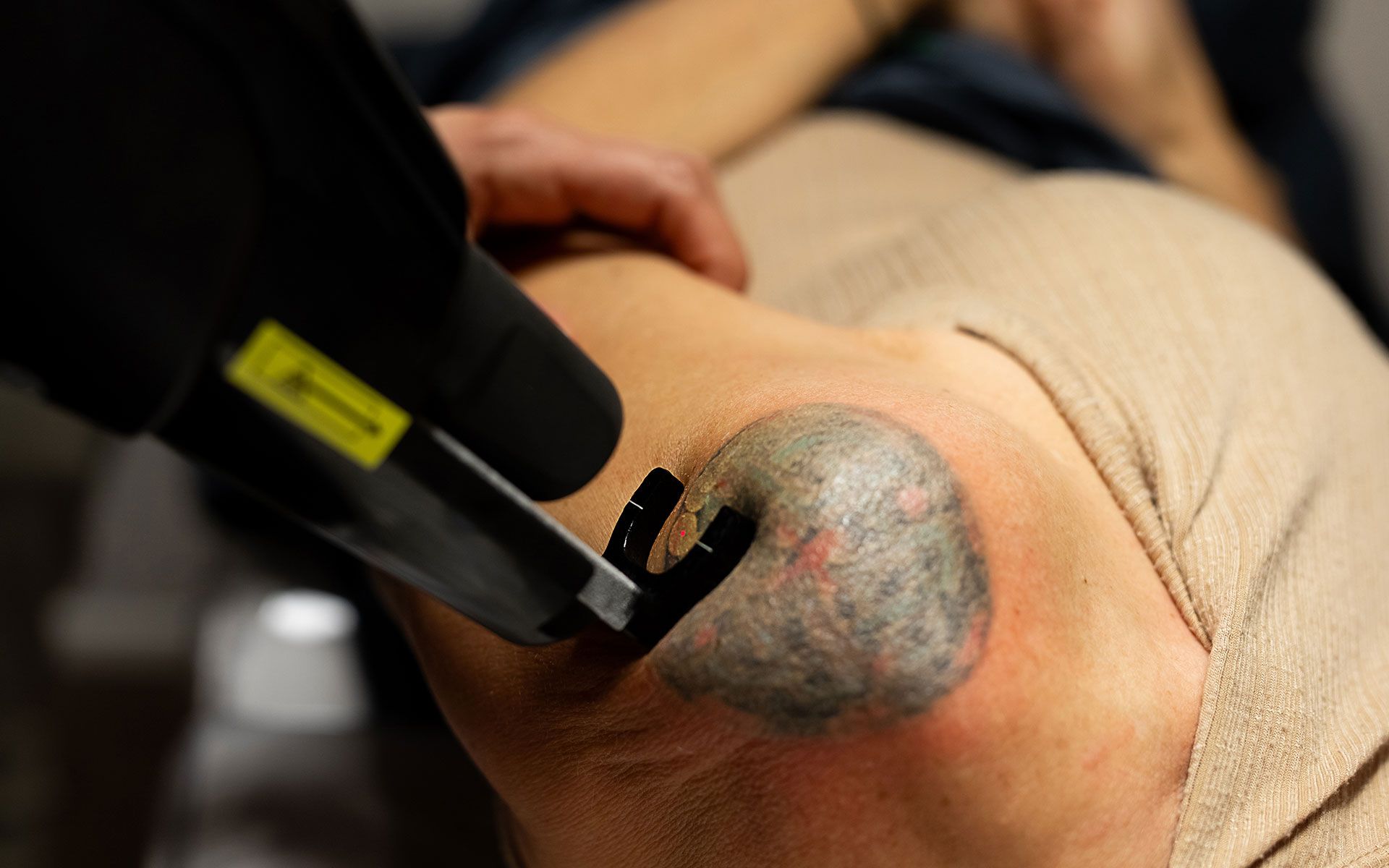 Before starting, our esthetic professionals perform a detailed consultation to evaluate your tattoo and discuss your skin goals. During your session, the laser handpiece is applied to the tattoo area in short bursts. You may feel a quick snapping sensation, similar to the snap of a rubber band, but the process is typically well-tolerated and much faster than most people expect.